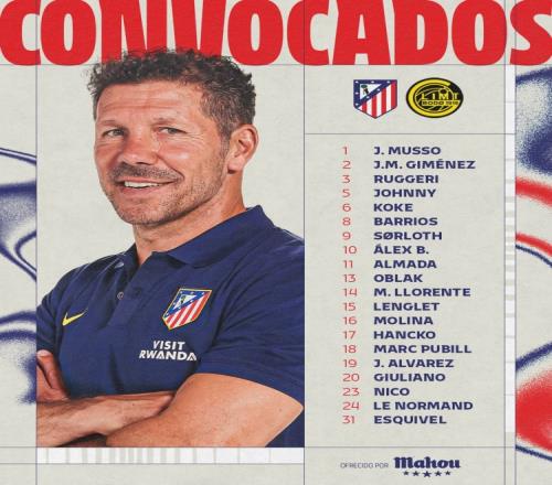 体育播报1月28日宣 北京时间明天凌晨4点,欧冠联赛阶段第8轮,马竞主场对阵博德闪耀,马竞公布了此役球队大名单。