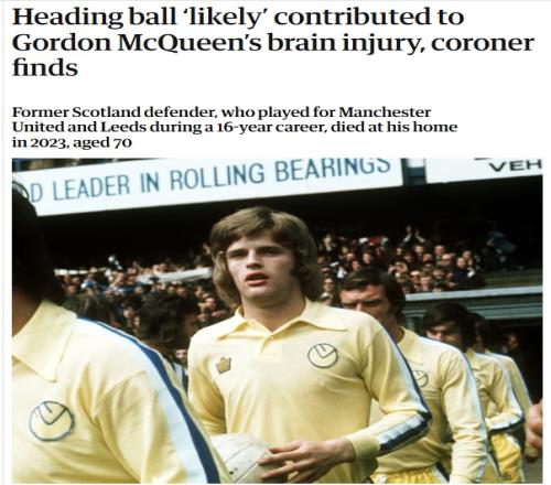 体育播报01月28日宣 苏格兰名宿,曾效力曼联的戈登·麦奎因于2023年6月去世,享年70岁。今日,有关麦奎因死因的研究中揭露,长期头球很可能导致了麦奎因的脑损伤。