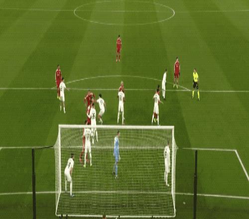 第14分钟,利物浦获得角球机会,埃基蒂克抢到前点,范迪克的头球变成助攻,麦卡利斯特的头球已经越过门线,门将才将球扑出,进球有效。
