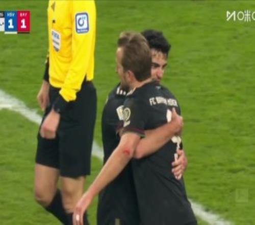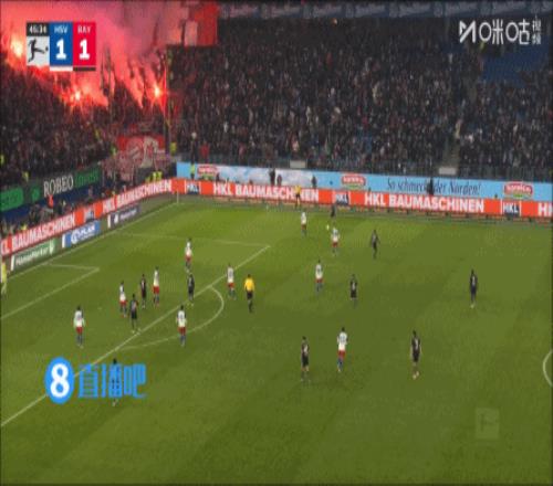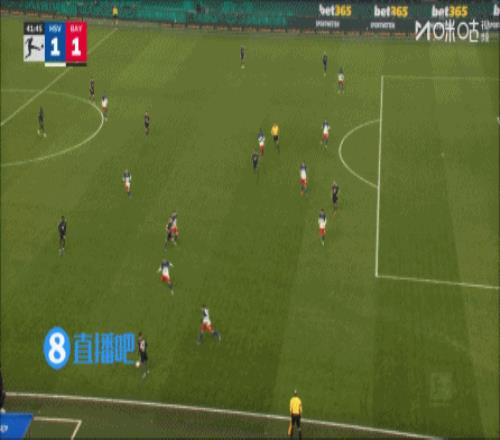 第42分钟,拜仁左侧肋部直塞,基米希将功补过,倒三角传球送助攻,凯恩包抄扳平比分!拜仁1-1汉堡↓